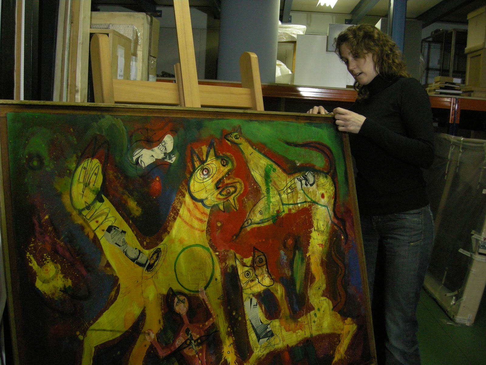 Samen met Brigitte Taal hout restaurator werk schilderijen restaurator Marjan de Visser aan de conservering van de bruikleen collectie van de weduwe van Jan Nieuwenhuys. We zorgen ervoor dat de schilderijen op jute en board presentabel worden voor de komende expositie in april 2013. Daarna zullen de werken door reizen naar een buitenlandse tentoonstelling. Marieke Kraan verzorgt de werken op papier. Kleurrijk en eigenzinnig werk. kijk maar op de site van Jan Nieuwenhuys