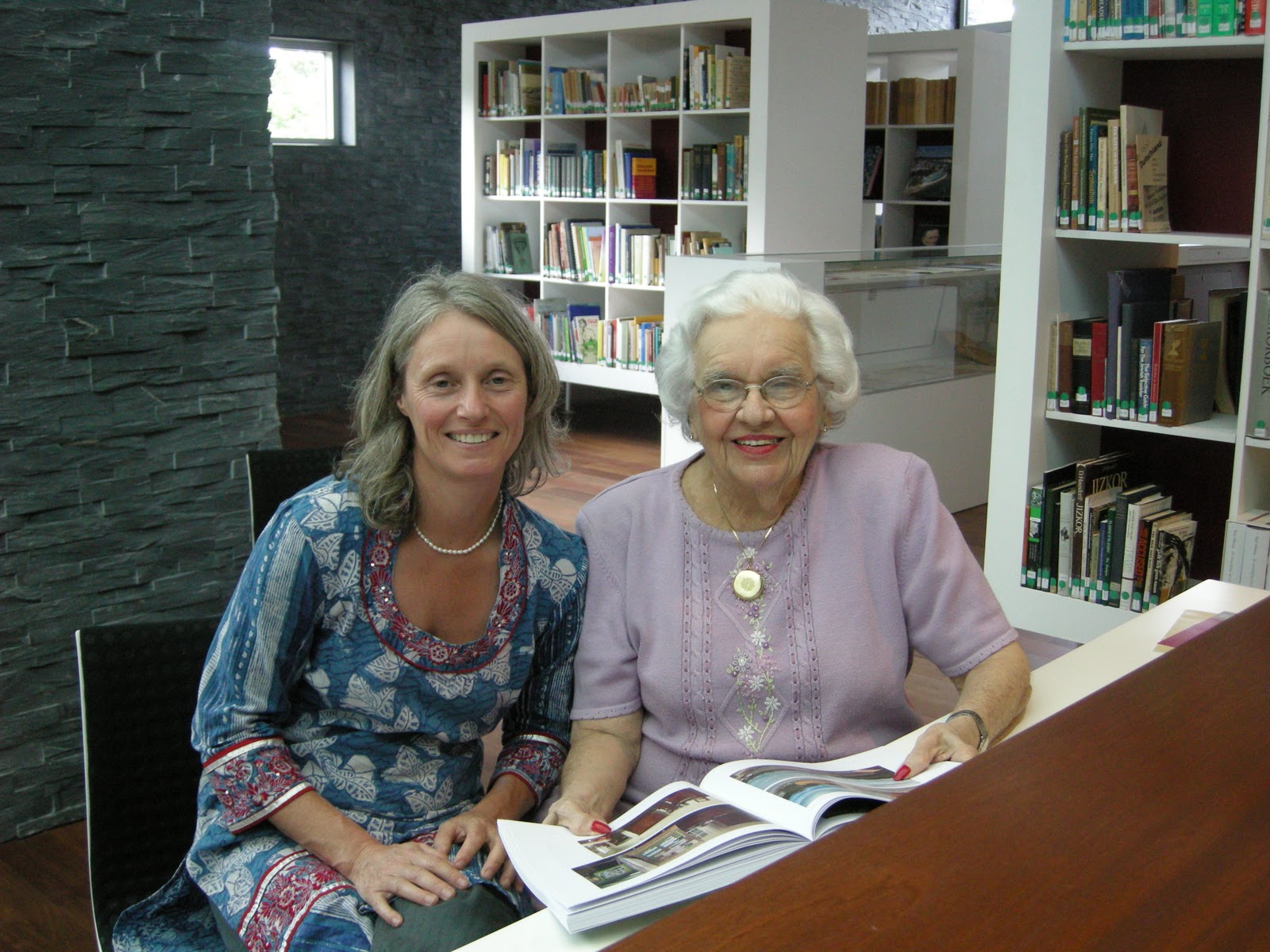 | Marjan de Visser en Ena Dankmeijer Maduro in de naar haar vernoemde bibliotheek |