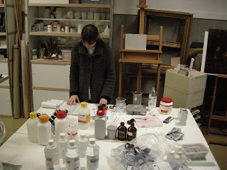 Het mengen gaat niet over rozen, blijkt de Natriumhydroxide niet van een juiste % te zijn. Verder gaat het erg langzaam, maar er moeten ook per set 29 mengsels gemaakt worden, voor het reinigen van vuil op verf en vernislagen en voor het oplossen van verouderde en vergeelde vernislagen.