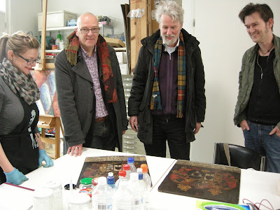 Restoration by Lenka Argalasova of two 17th ’s century Coats of arms of a Dutch family belonging to theCentraal Bureau voor Genealogie Den Haag. Discusion of the further restoration treatments with Rob van Drie, Bert Lever and Conrad Gietman from Centraal Bureau voor Genealogie.