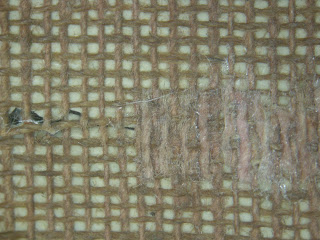 Dagen pielen onder de microscoop met een warme naald, pincet en speld om draadje voor draadje weer aan elkaar te hechten. Extra draadjes ertussen voor meer stevigheid…concentratie!